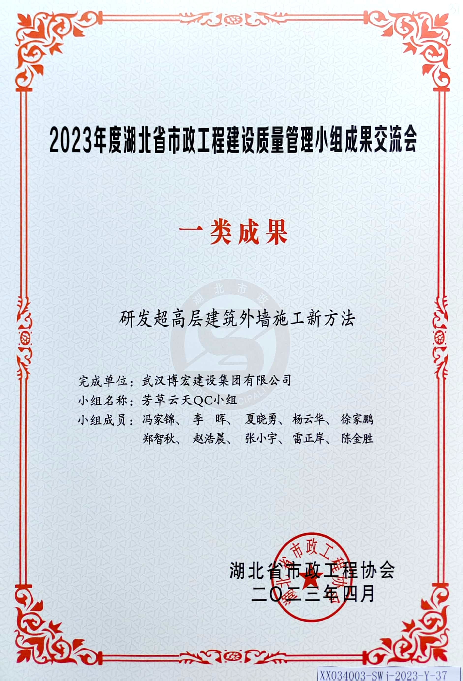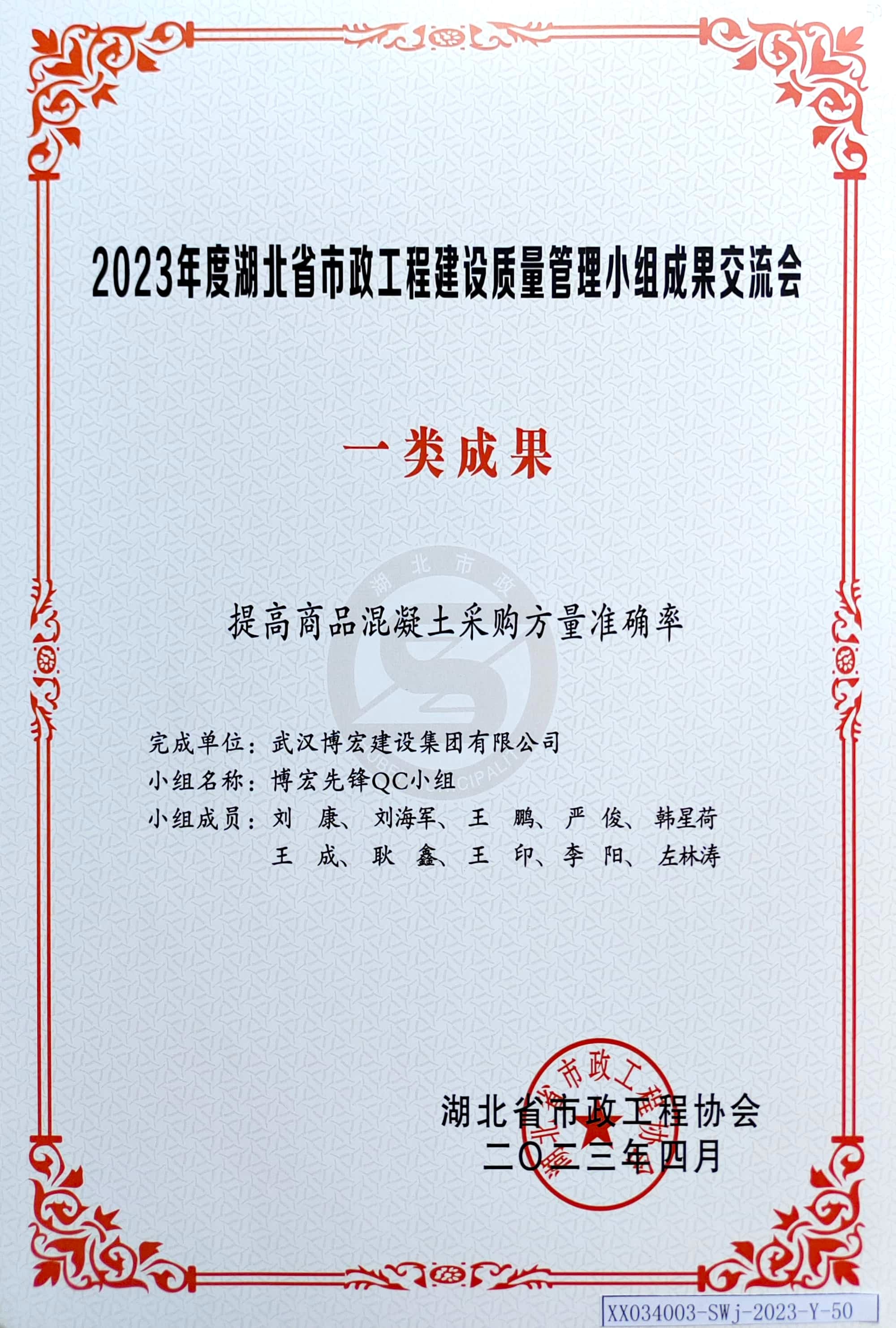 2023年度湖北省市政工程建設質(zhì)量管理小組成果交流會 一類成果