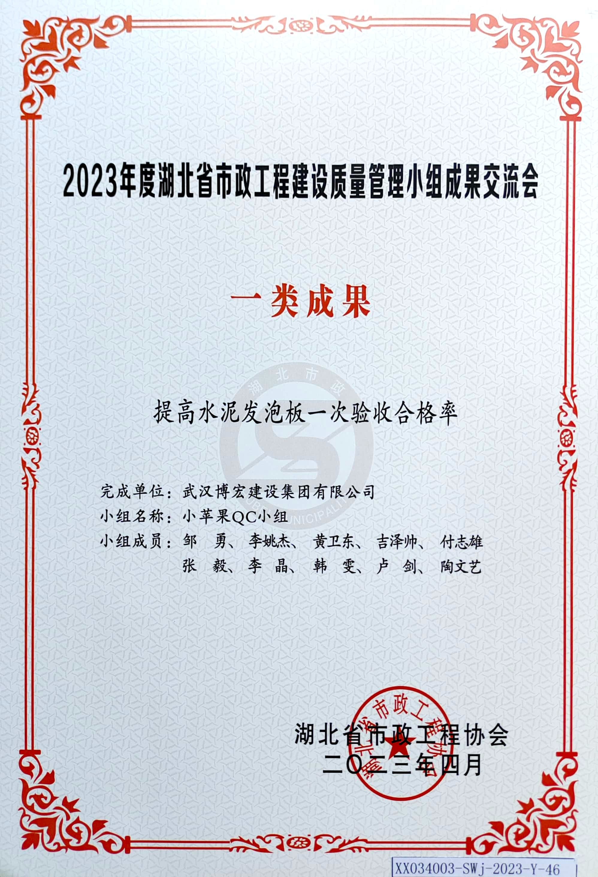 2023年度湖北省市政工程建設質(zhì)量管理小組成果交流會-一類成果