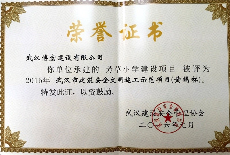 芳草小學(xué)-1#教學(xué)樓結(jié)構(gòu)優(yōu)質(zhì)工程證書