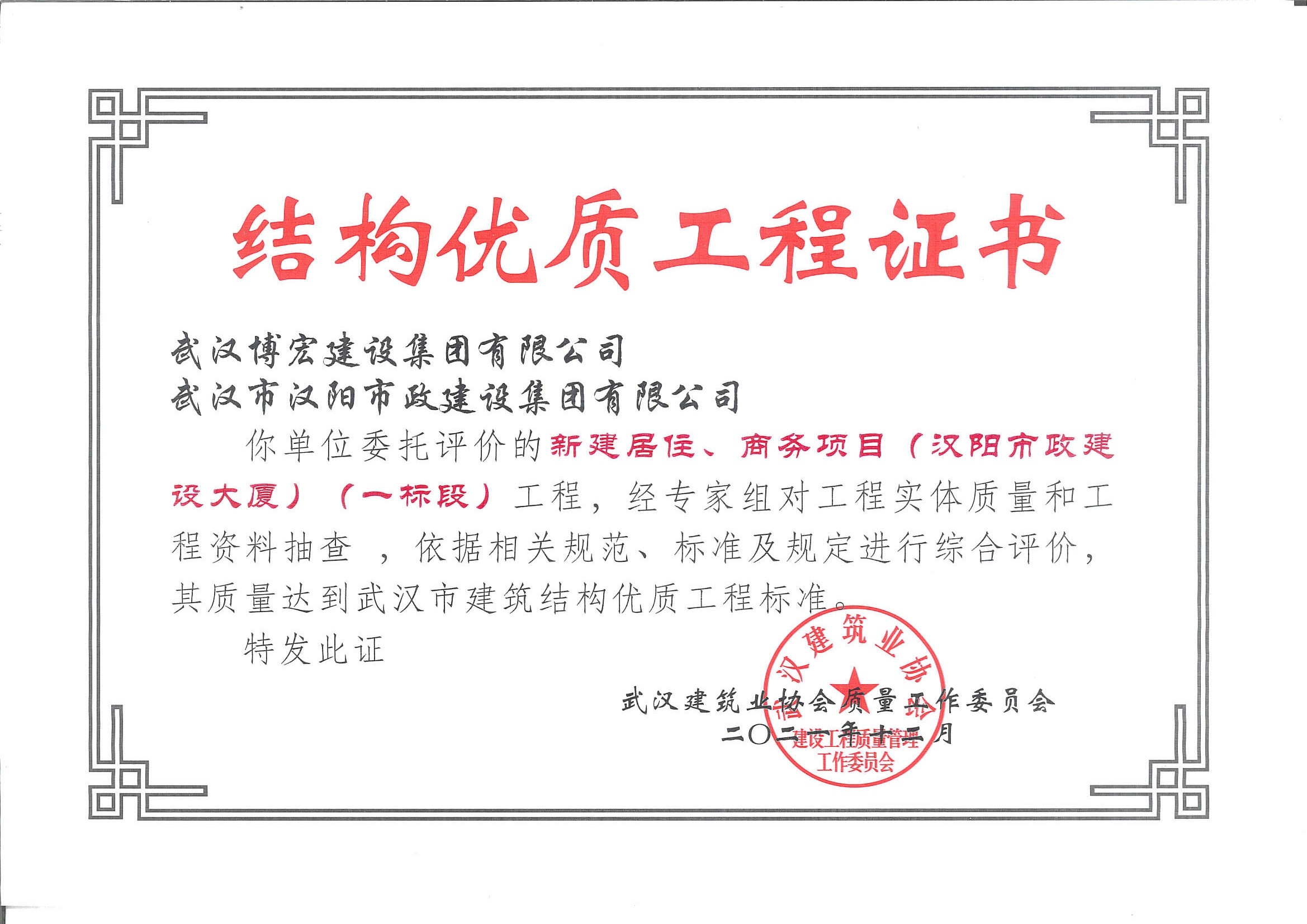 武漢市建筑結(jié)構(gòu)優(yōu)質(zhì)工程 漢陽市政大廈(一標(biāo)段)