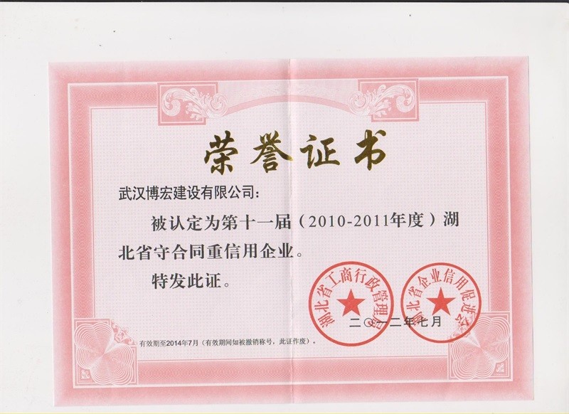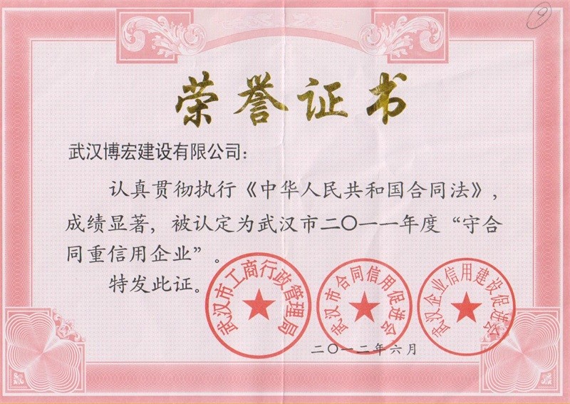 2012-2013年度武漢地區(qū)市政行業(yè)企業(yè)信譽(yù)等級(jí)證書