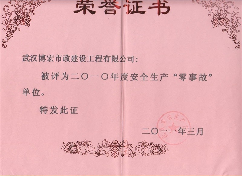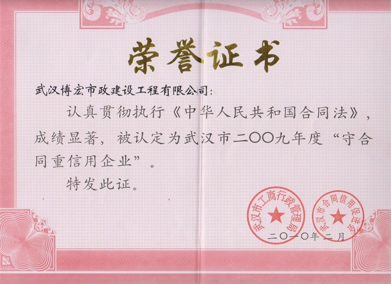 2010-2011年度武漢地區(qū)市政企業(yè)信譽(yù)等級(jí)證書