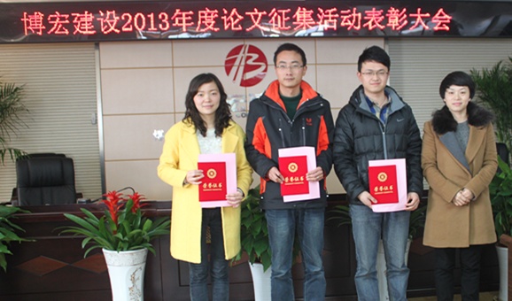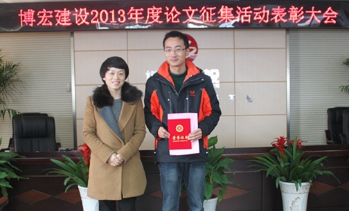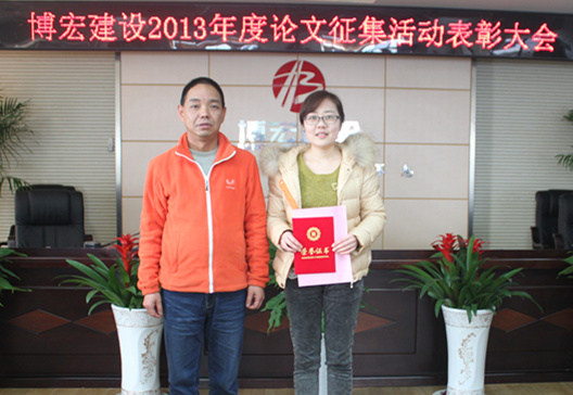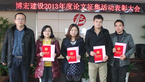 2014年3月5日下午在武漢博宏建設有限公司會議室舉行了2013年度博宏建設論文征集活動表彰大會,財務室鄒璇同志的論文《試論博宏公司如何分攤企業(yè)管理費用的方法探討》榮獲一等獎。