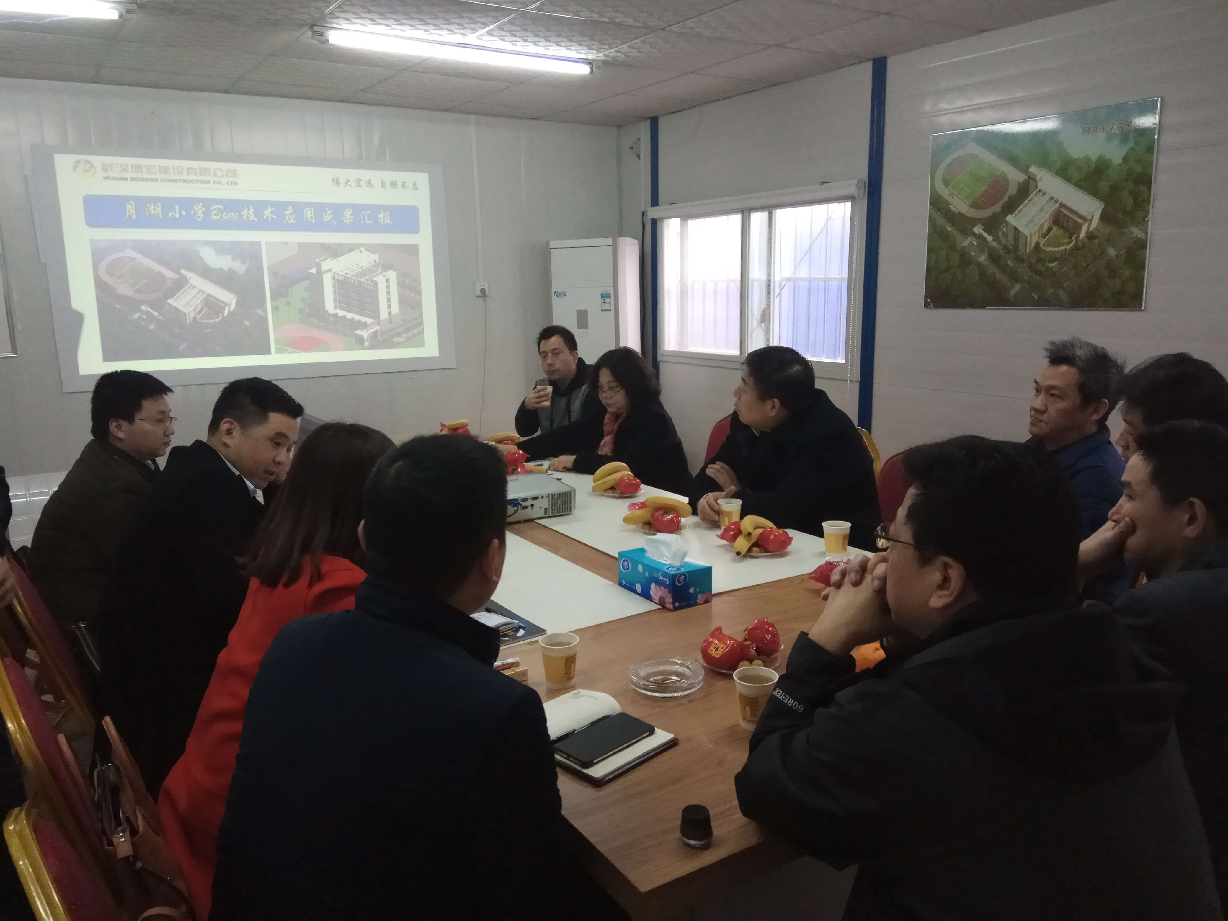 考察交流會(huì)議上為加強(qiáng)雙方了解,公司經(jīng)營(yíng)副總蘇琦首先就公司近年來(lái)發(fā)展及資質(zhì)情況進(jìn)行了簡(jiǎn)單介紹。接下來(lái)公司副總工程師梅浩對(duì)BIM技術(shù)在月湖小學(xué)施工建設(shè)中取得的效果進(jìn)行了概述。總工辦文志勇從圖紙審查、碰撞檢查、可視化交底、砌體排磚、進(jìn)度質(zhì)量安全管理、施工模擬等多個(gè)方面一一介紹BIM技術(shù)為月湖小學(xué)工程建設(shè)帶來(lái)的成果及效益,總結(jié)了BIM技術(shù)應(yīng)用經(jīng)驗(yàn),并簡(jiǎn)單介紹了下一步BIM應(yīng)用計(jì)劃安排。