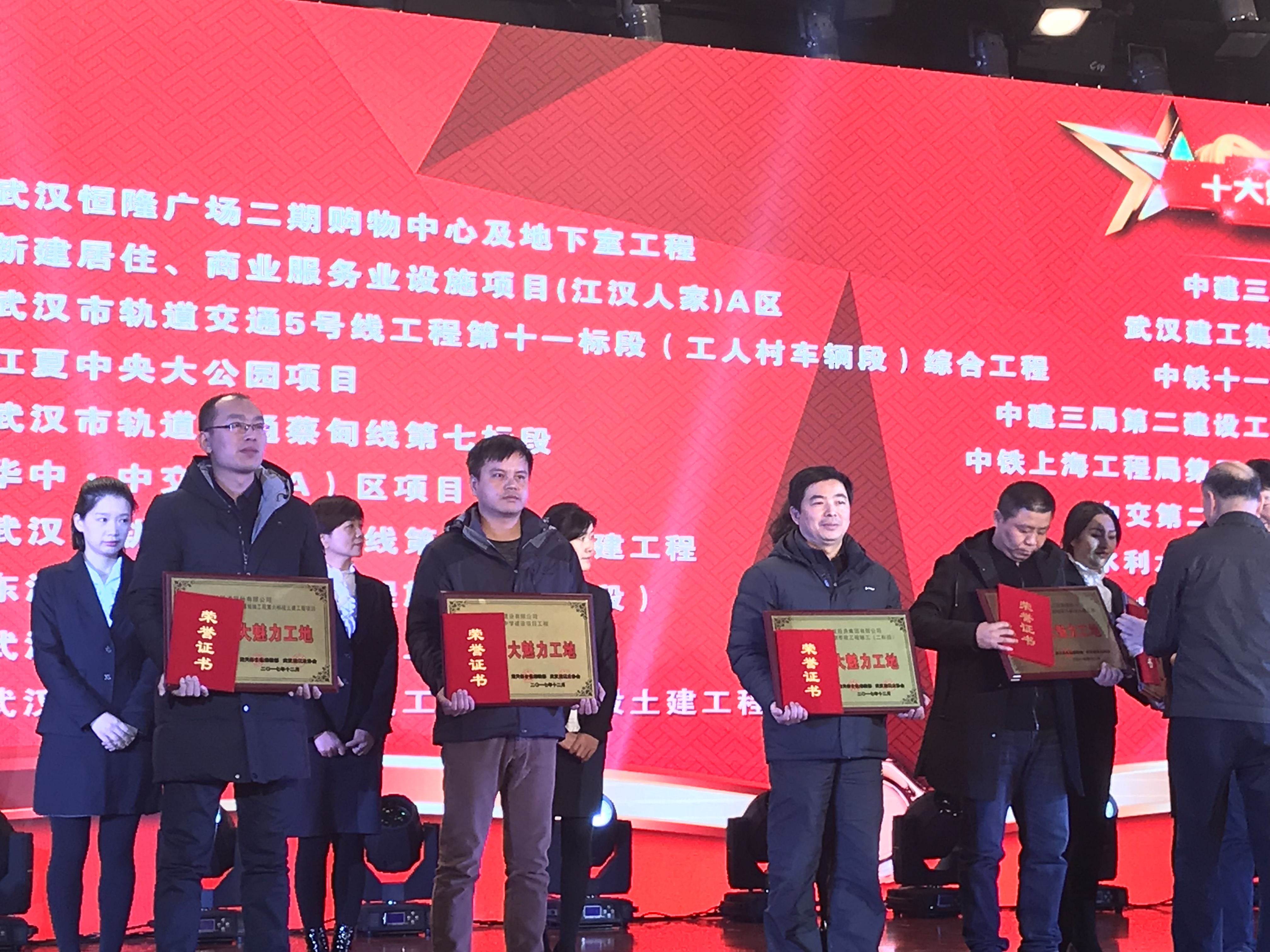 2018年1月7日下午,2017年度“江城十大魅力工地、十大智慧工地”評(píng)選活動(dòng)頒獎(jiǎng)典禮在楚天傳媒大廈隆重召開,湖北省總工會(huì)、武漢市總工會(huì)、武漢建筑業(yè)協(xié)會(huì)、湖北日?qǐng)?bào)、楚天都市報(bào)等相關(guān)單位領(lǐng)導(dǎo)出席典禮,并為武漢四新中學(xué)建設(shè)項(xiàng)目工程等獲獎(jiǎng)工程頒發(fā)獎(jiǎng)牌與榮譽(yù)證書。