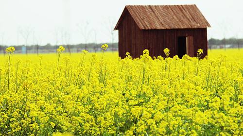 陽春三月,春風(fēng)如沐。桃花紅了、柳葉綠了,長江的水也暖和了。露水吻濕了片片綠葉,整個江城散發(fā)出如酒似蜜的清香。田里金黃的油菜花,成了蝴蝶的天地,美麗的蝴蝶在金黃色的舞臺上跳著柔和而優(yōu)美的舞姿,偶爾一陣微風(fēng)吹來,油菜花立刻涌起了高低起伏的“金浪花”,遠遠望去,令人美不勝收!——這是我記憶中的春天油菜花地。