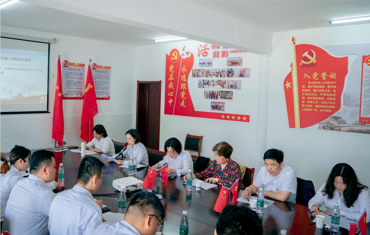 面對黨旗,舉起右手,在全體人員的莊嚴(yán)宣誓中,拉開了活動的序幕。