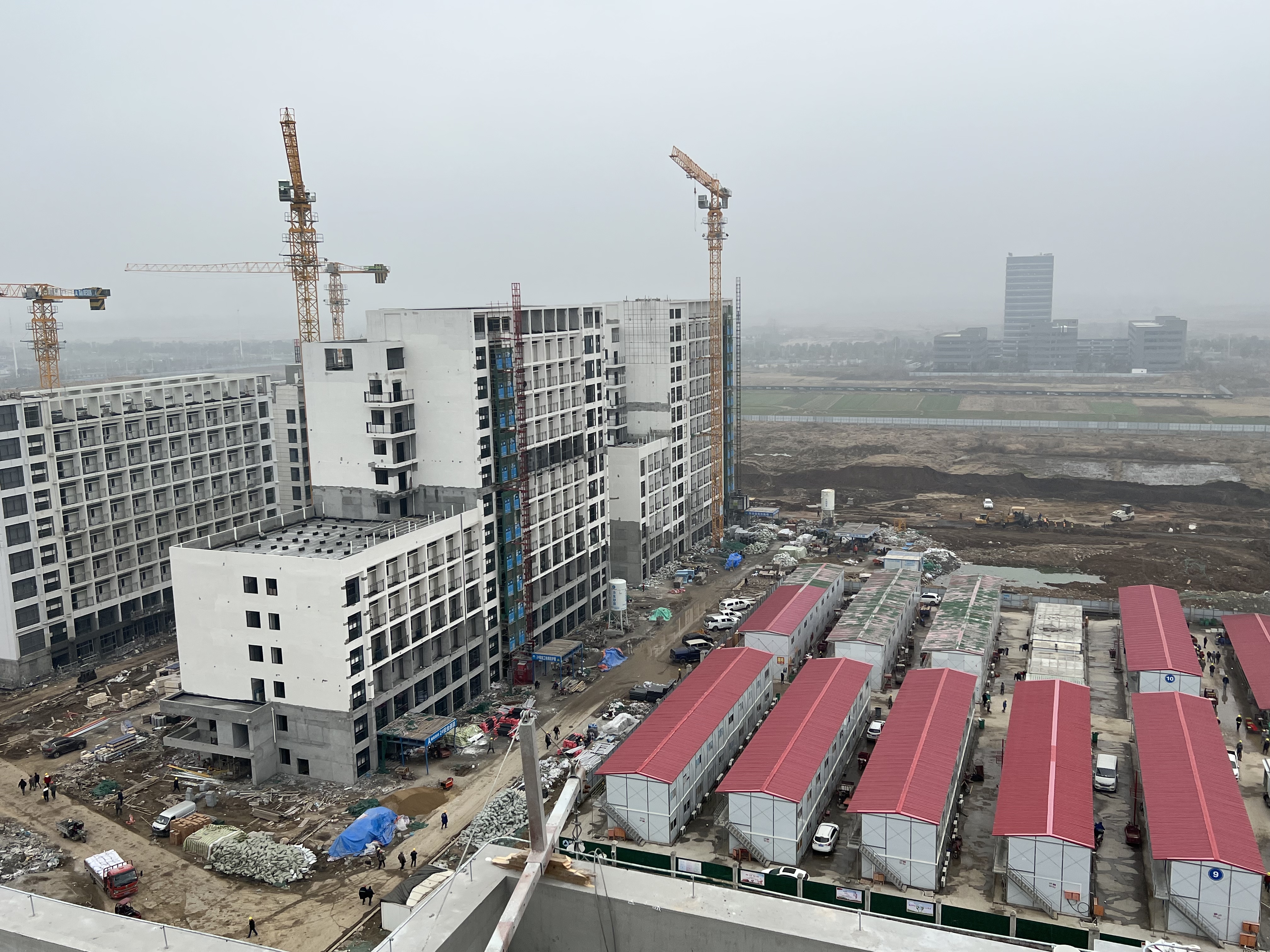 項目部遵循“緊前不緊后”的原則,春節(jié)前,項目部提前做了好春節(jié)期間不停工的相關(guān)部署:確定春節(jié)期間施工內(nèi)容和施工人員;提前將春節(jié)期間施工的保溫地坪材料、屋面磚、黃沙、水泥等材料運(yùn)送進(jìn)場;提前聯(lián)系挖機(jī)、鏟車以及塔吊等,施工電梯不停工;同時,確保春節(jié)期間項目餐廳正常供餐,并提高工人用餐標(biāo)準(zhǔn),水電工常駐工地,及時處理斷水?dāng)嚯姷奶厥馇闆r,確保項目團(tuán)隊正常生活不受影響。春節(jié)期間,各班組現(xiàn)場施工人員合計228人、項目部管理人員13人,進(jìn)行現(xiàn)場水電安裝施工、室內(nèi)抹灰、刮膩子等工序的施工。自年前項目中標(biāo)開始,“起步即沖刺、開工即決戰(zhàn)”的新年奮進(jìn)號角在項目現(xiàn)場就已經(jīng)吹響。公司第一時間整合資源,抽調(diào)公司精英骨干及多個項目管理團(tuán)隊,組成“幫幫團(tuán)”,集中人力和物力進(jìn)行支援。