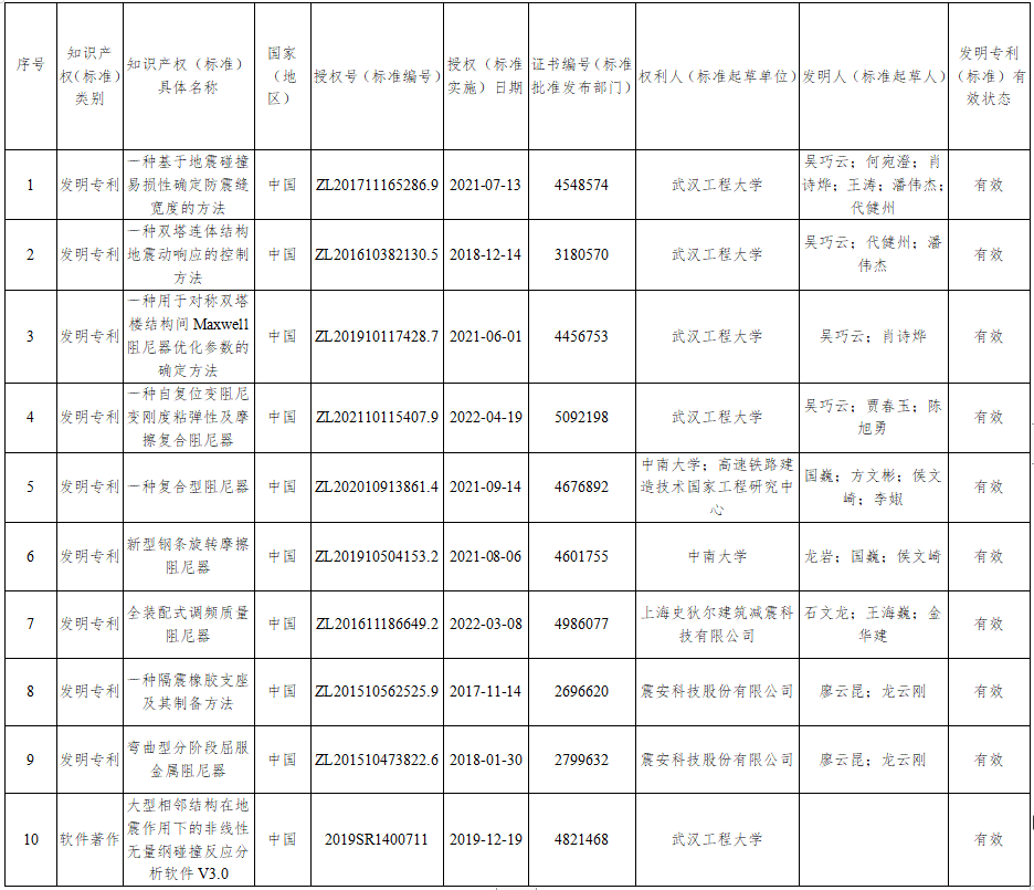 主要完成單位:武漢工程大學(xué)、中南建筑設(shè)計院股份有限公司、震安科技股份有限公司、上海史狄爾建筑減震科技有限公司、中南大學(xué)、武漢博宏建設(shè)集團(tuán)有限公司、福州大學(xué)、湖南省建筑設(shè)計院集團(tuán)股份有限公司、中信建筑設(shè)計研究總院有限公司、高速鐵路建造技術(shù)國家工程研究中心