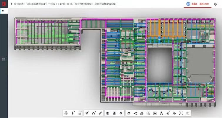 研究生期間彭迎研究的方向是BIM技術(shù)土建方向,但工作需要盡快上手的是BIM技術(shù)機電方向,一時讓她有點手足無措,“有問題先嘗試解決,辦法總比困難多”踏實肯干的她選擇了迎難而上,白天她跟著師傅們不厭其煩地穿梭于現(xiàn)場的各個樓棟,在工作過程中多看、多問、多記、多學,晚上回到宿舍,她通過閱讀大量BIM機電方向相關(guān)書籍以及上網(wǎng)課等方式自學相關(guān)知識,有時為了弄懂一個問題常常奮戰(zhàn)到深夜。從入門到逐漸架構(gòu)起整個知識體系,彭迎經(jīng)歷了半年的時間。在自學期間,她遇到了很多困難和瓶頸,但因為熱愛,從未想過放棄。“那段時間很累但是也很充實,每天都能學習到新的東西,讓我對機電的了解越來越深入,也越發(fā)體會到了BIM的魅力??粗约豪L制的BIM圖紙粘貼在了施工墻上,工人按照圖紙可以搭建出符合標準的砌體,心中的喜悅是無法用語言描述的。”回憶起那段時光時,她臉上總是帶著微笑。理論上的認真鉆研,現(xiàn)場中的建模實踐,彭迎的專業(yè)技術(shù)在不懈努力中愈見純熟,在負責總部大樓地上部分機電BIM工作過程中考取了BIM二級設(shè)備證,也和同事們一起獲得了多項國家級、省市級BIM獎項,熱愛與進取讓她一次次品嘗到了成功的碩果。