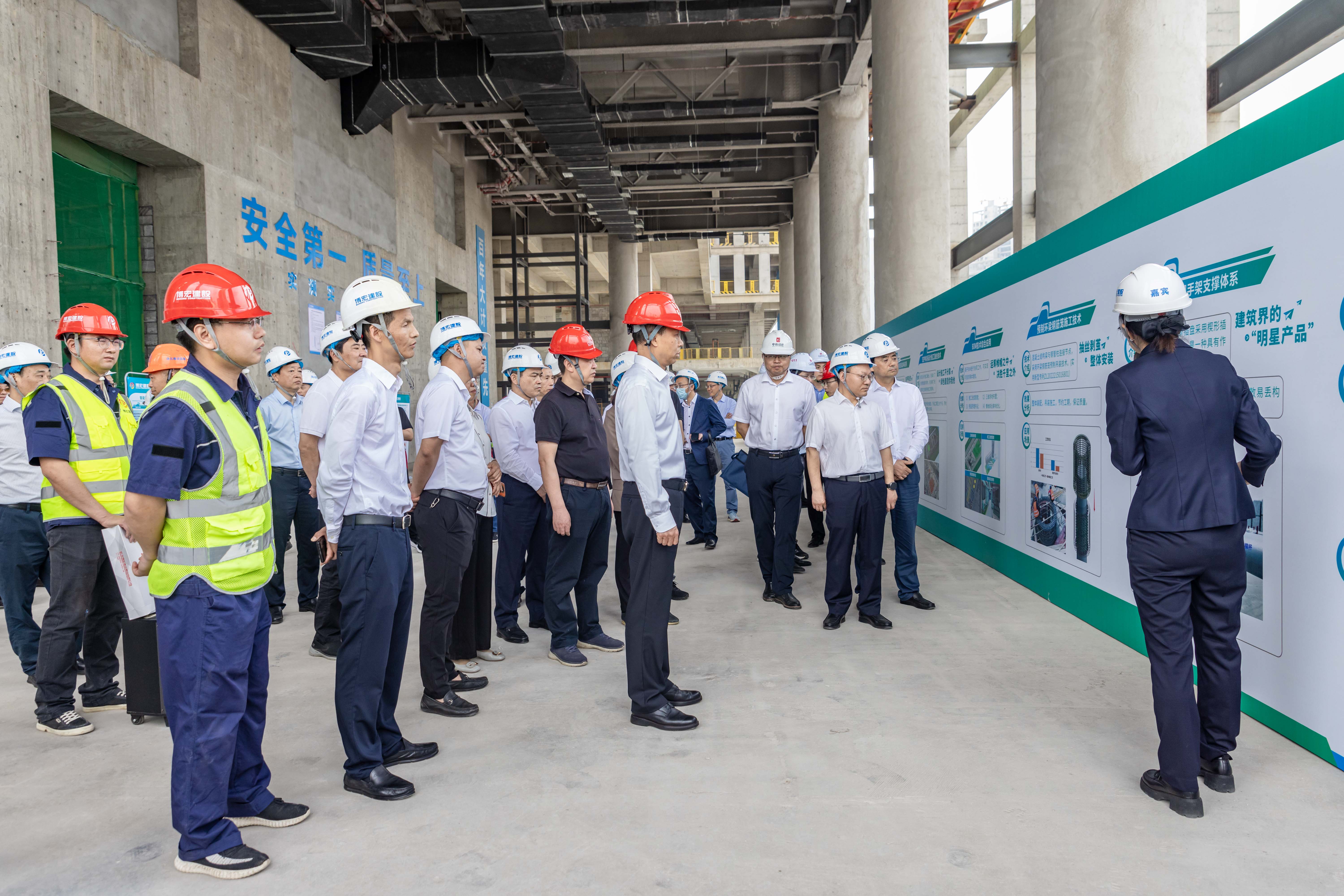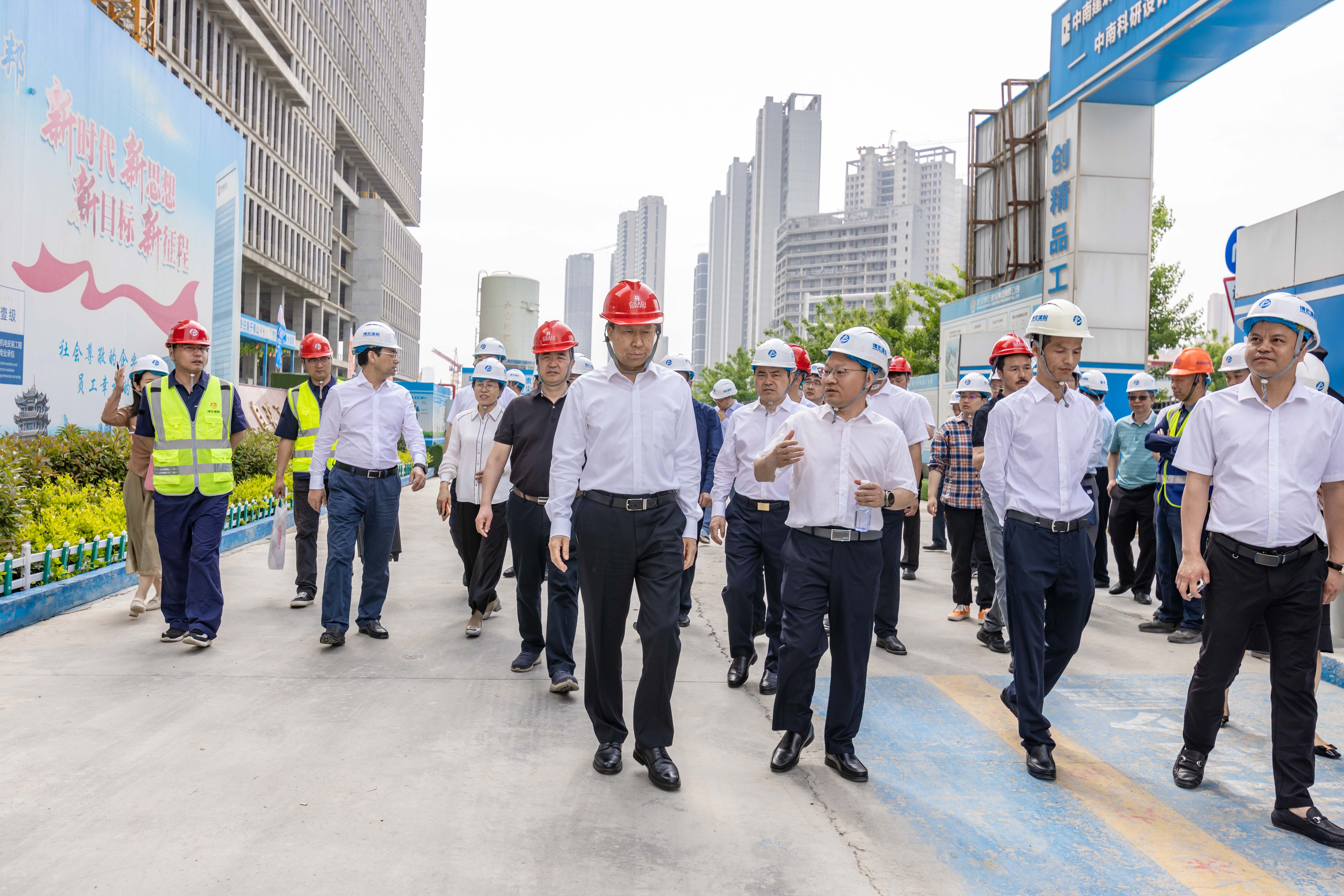 劉雪榮一行首站參觀了中南科研設計中心項目,該項目是“湖北省綠色建造智能建造品質(zhì)建造科技創(chuàng)新融合試點項目”,在推廣綠色建造創(chuàng)新關鍵技術上積極探索“四新”(新技術、新工藝、新材料、新設備)技術應用,也是踐行綠色建筑理念的藍本