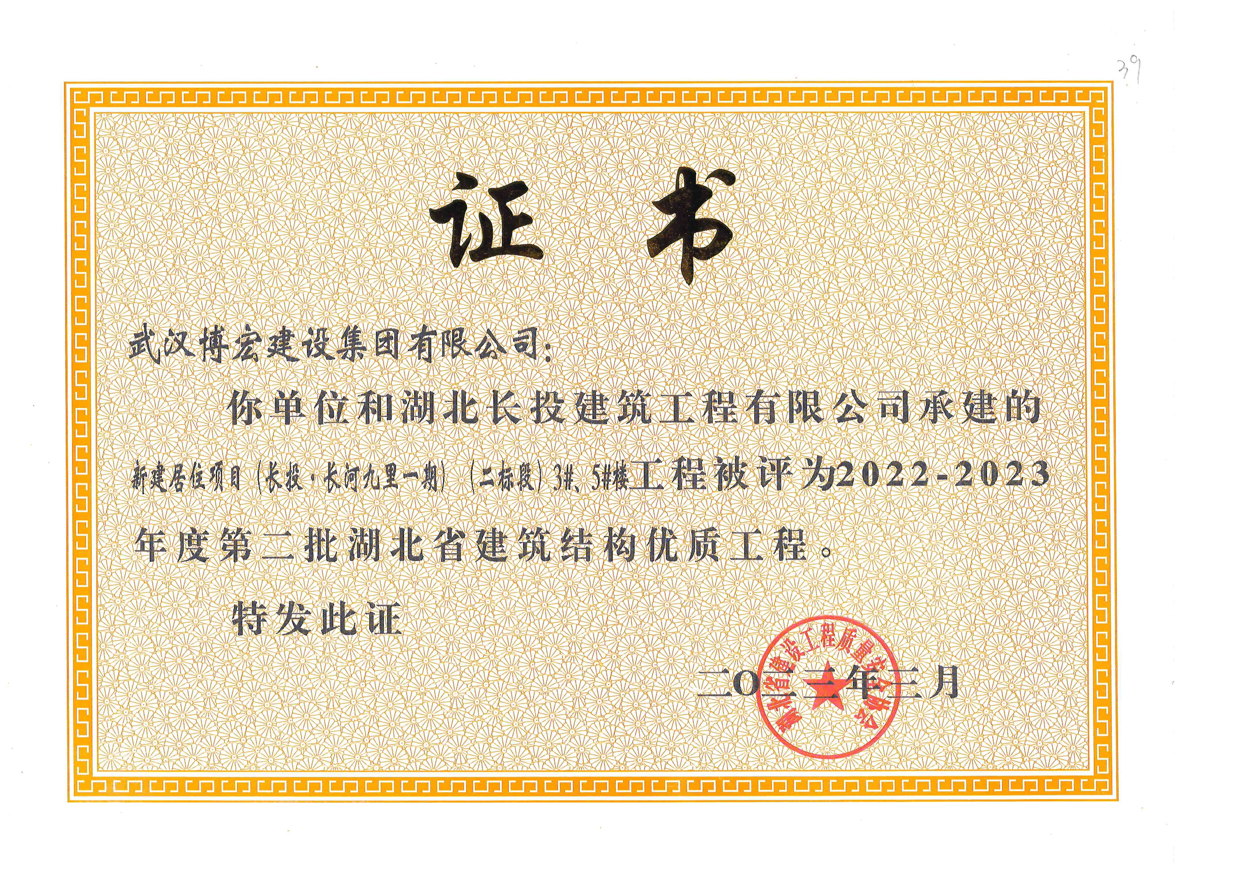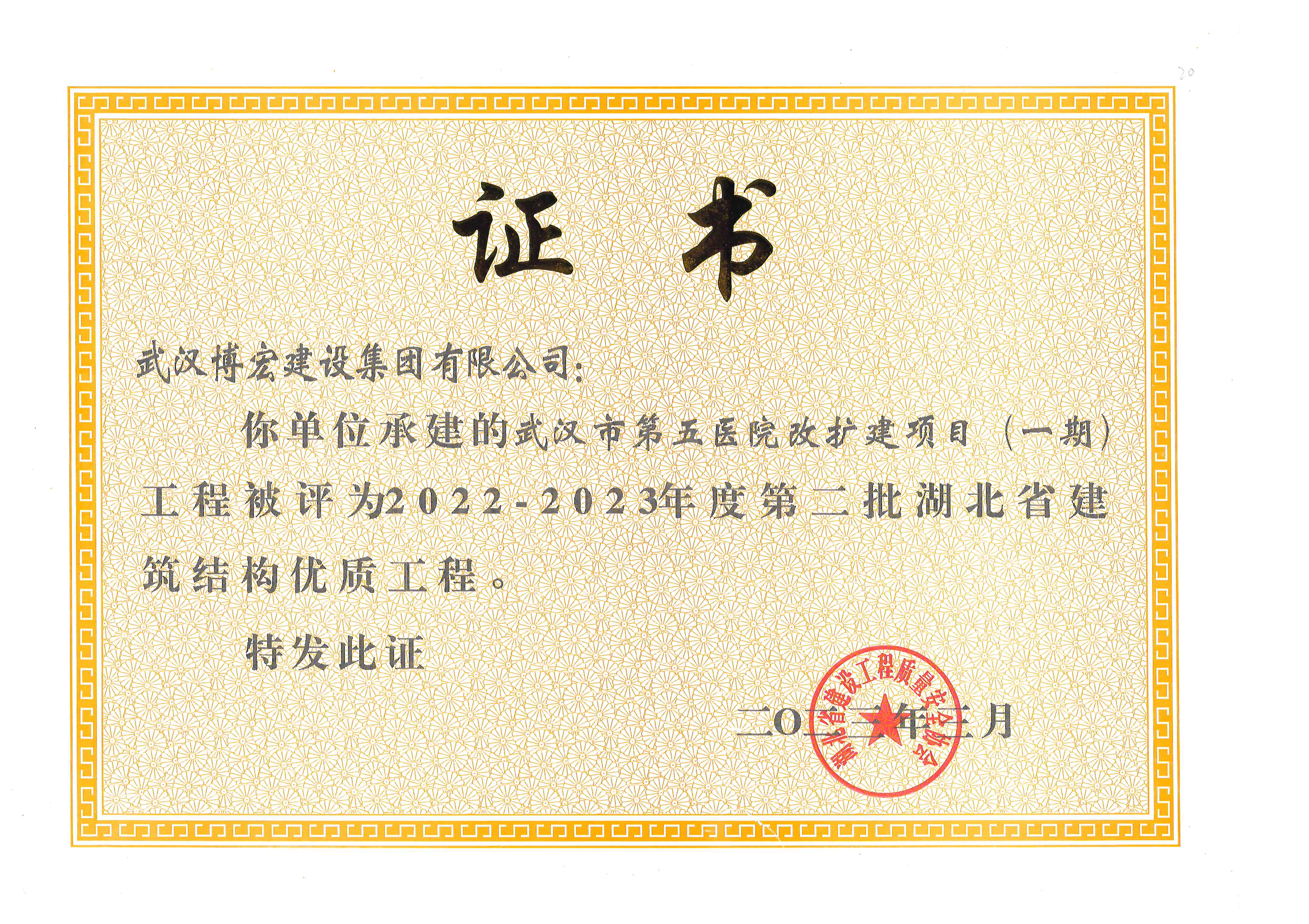 近日,湖北省住建廳2022—2023年度第二批湖北省建筑結(jié)構(gòu)優(yōu)質(zhì)工程項(xiàng)目名單出爐,由博宏建設(shè)集團(tuán)承建的武漢市第五醫(yī)院改擴(kuò)建項(xiàng)目(一期)、新建居住項(xiàng)目(長投·長河九里一期)(二標(biāo)段)3#、5#樓榮獲湖北省建筑結(jié)構(gòu)優(yōu)質(zhì)工程獎(jiǎng)。“湖北省建筑結(jié)構(gòu)優(yōu)質(zhì)工程獎(jiǎng)”是湖北省建筑結(jié)構(gòu)工程領(lǐng)域的最高獎(jiǎng)項(xiàng),獲得該獎(jiǎng)項(xiàng)標(biāo)志著該項(xiàng)目在工程結(jié)構(gòu)設(shè)計(jì)、工程施工管理、材料供應(yīng)保證、過程質(zhì)量控制等方面均達(dá)到省級(jí)領(lǐng)先水平。