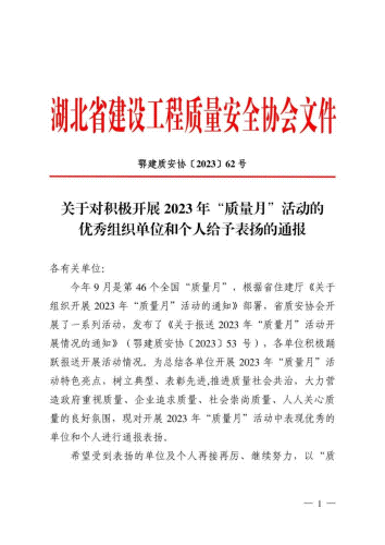 近日,博宏建設榮獲湖北省建設工程質量安全協會2023年“質量月”活動優(yōu)秀組織單位表彰,李德江、江緒芫、吉澤帥、鄭智秋、王杰、王小勇、劉陽、馬滕、郭永寧、柯善偉共10人榮獲2023年“質量月”活動優(yōu)秀個人表彰。