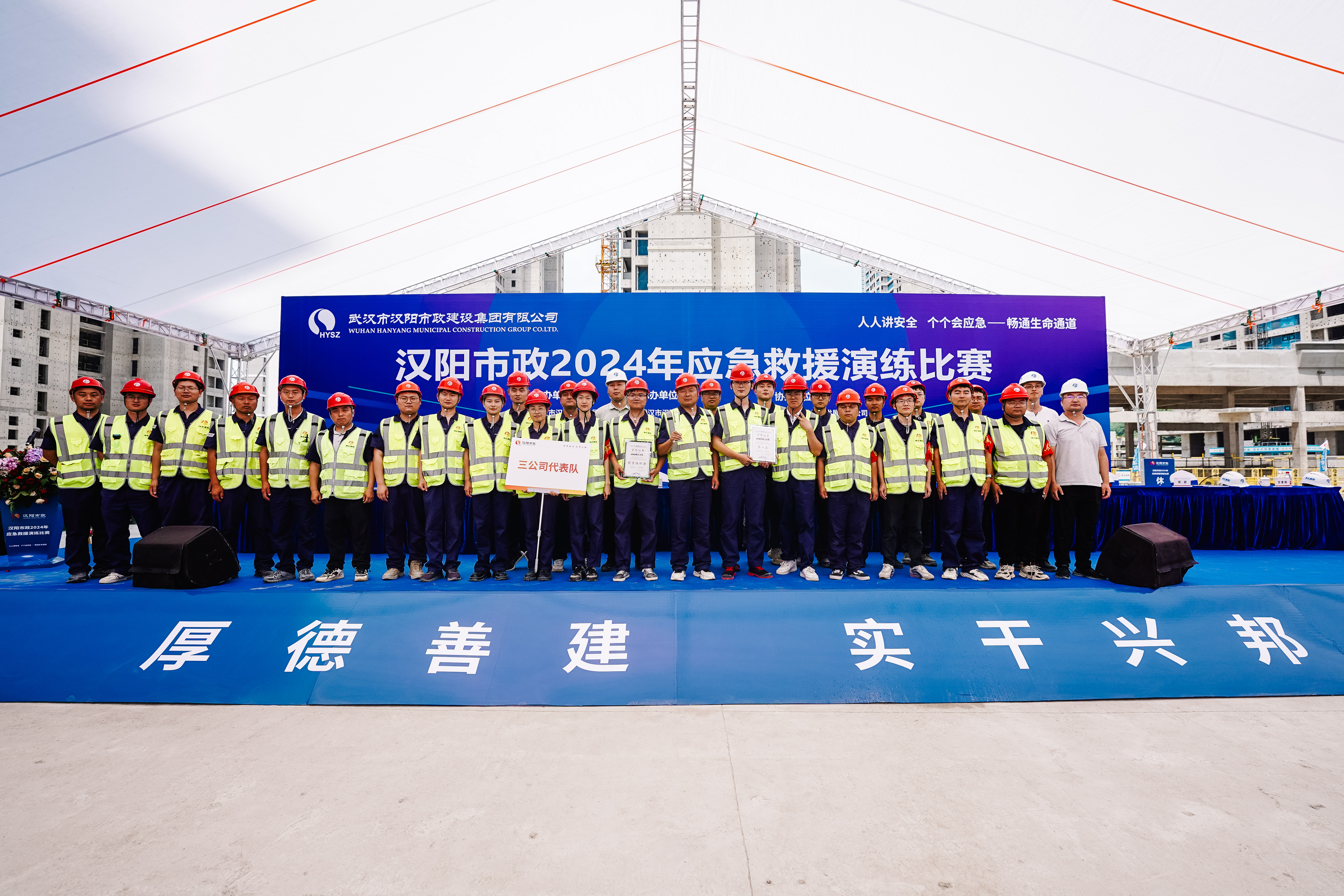 6月7日上午,漢陽市政2024年“安全生產月”啟動儀式暨應急救援演練比賽在米糧村還建房 B 地塊舉行,博宏建設在應急救援演練比賽中勇奪第一名。